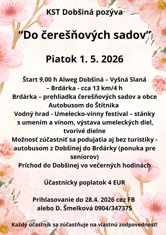Klub slovenských turistov v Dobšinej organizuje dňa 1.5.2026 (v piatok) turistickú akciu
